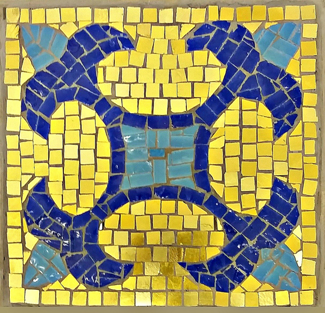One of 15 mosaic panels to be installed on the frieze around the reredos canopy.